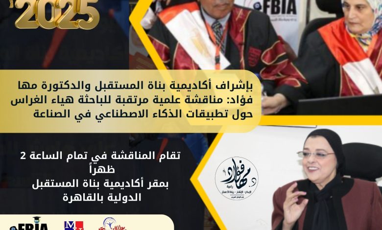 بإشراف أكاديمية بناة المستقبل والدكتورة مها فؤاد: مناقشة علمية مرتقبة للباحثة هياء الغراس حول تطبيقات الذكاء الاصطناعي في الصناعة