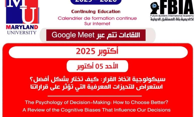 أكاديمية بناة المستقبل الدولية تطلق أول لقاء علمي للعام الدراسي الجديد حول “سيكولوجية اتخاذ القرار”