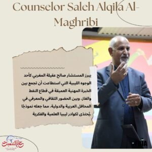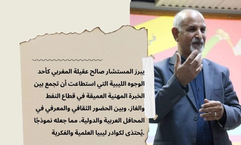 يبرز المستشار صالح عقيلة المغربي كأحد الوجوه الليبية التي استطاعت أن تجمع بين الخبرة المهنية العميقة في قطاع النفط والغاز، وبين الحضور الثقافي والمعرفي في المحافل العربية والدولية، مما جعله نموذجًا يُحتذى لكوادر ليبيا العلمية والفكرية.