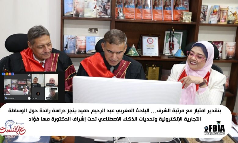 بتقدير امتياز مع مرتبة الشرف… الباحث المغربي عبد الرحيم حميد ينجز دراسة رائدة حول الوساطة التجارية الإلكترونية وتحديات الذكاء الاصطناعي تحت إشراف الدكتورة مها فؤاد