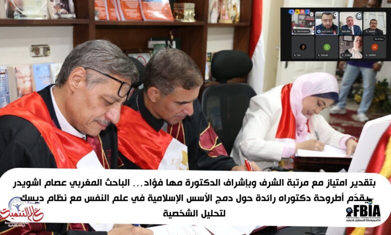 بتقدير امتياز مع مرتبة الشرف وبإشراف الدكتورة مها فؤاد… الباحث المغربي عصام اشويدر يقدّم أطروحة دكتوراه رائدة حول دمج الأسس الإسلامية في علم النفس مع نظام ديسك لتحليل الشخصية