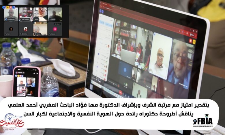 بتقدير امتياز مع مرتبة الشرف وبإشراف الدكتورة مها فؤاد… الباحث المغربي أحمد العلمي يناقش أطروحة دكتوراه رائدة حول الهوية النفسية والاجتماعية لكبار السن