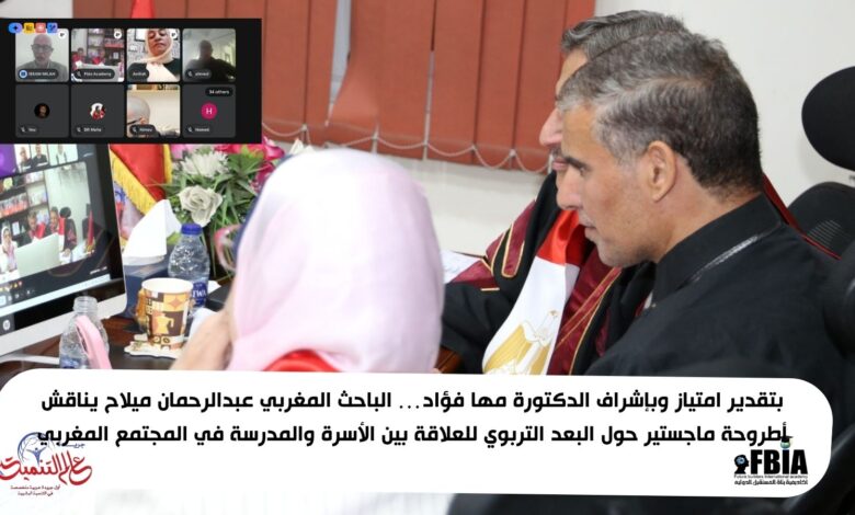 بتقدير امتياز وبإشراف الدكتورة مها فؤاد… الباحث المغربي عبدالرحمان ميلاح يناقش أطروحة ماجستير حول البعد التربوي للعلاقة بين الأسرة والمدرسة في المجتمع المغربي