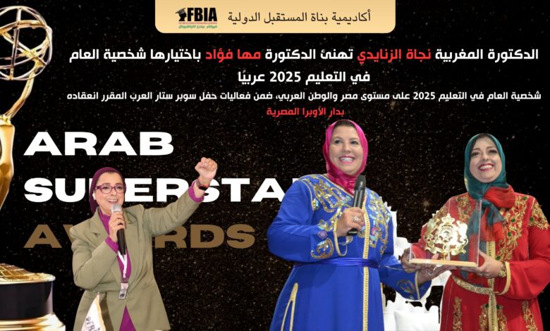 وجهت الدكتورة نجاة الزنايدي، من المملكة المغربية، تهنئة رسمية تعبر عن الفخر والاعتزاز إلى الدكتورة مها فؤاد، رئيسة أكاديمية بناة المستقبل الدولية، بعد اختيارها شخصية العام في التعليم 2025 على مستوى مصر والوطن العربي، وذلك خلال حفل سوبر ستار العرب المنتظر إقامته بدار الأوبرا المصرية يوم السادس من ديسمبر.