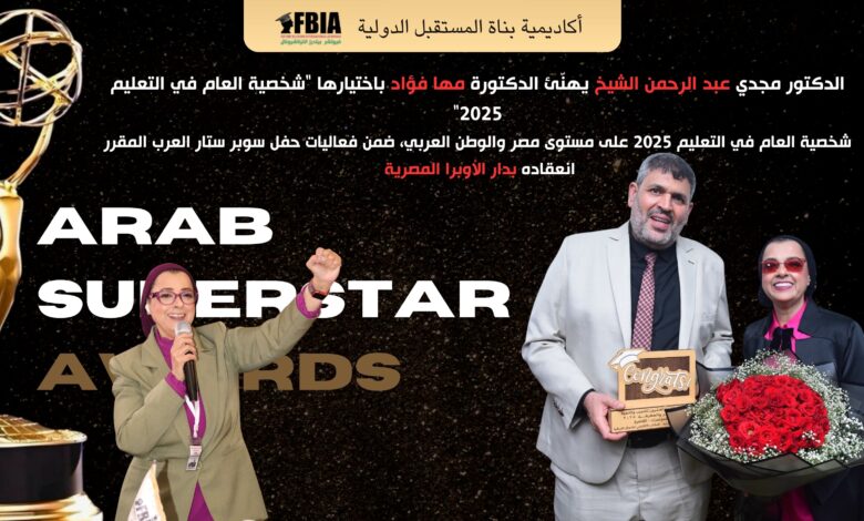 وجّه الدكتور مجدي عبد الرحمن الشيخ، المتخصص في مناهج وطرق تدريس الرياضيات، تهنئة خاصة للدكتورة مها فؤاد، رئيس أكاديمية بناة المستقبل الدولية والوكيل الحصري لجامعة ميريلاند في مصر والمغرب والإمارات العربية المتحدة، بمناسبة اختيارها “شخصية العام في التعليم 2025” ضمن فعاليات مهرجان سوبر ستار العرب المقرر إقامته يوم 6 ديسمبر القادم بدار الأوبرا المصرية.