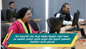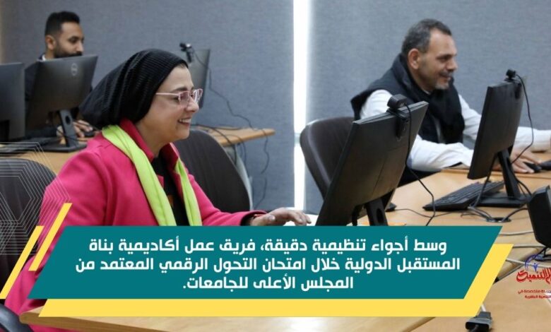 فريق عمل أكاديمية بناة المستقبل الدولية وسط أجواء امتحان التحول الرقمي المعتمد من المجلس الأعلى للجامعات