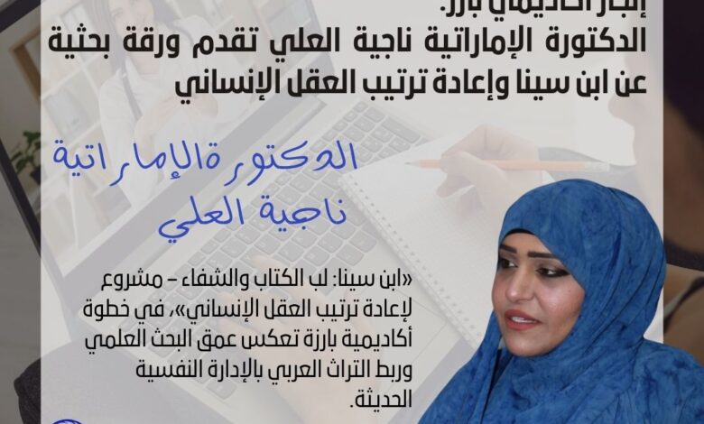 إنجاز أكاديمي بارز: الدكتورة الإماراتية ناجية العلي تقدم ورقة بحثية عن ابن سينا وإعادة ترتيب العقل الإنساني