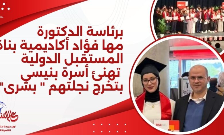 برئاسة الدكتورة مها فؤاد أكاديمية بناة المستقبل الدولية تهنئ أسرة بنيسي بتخرج نجلتهم ” بشرى”