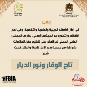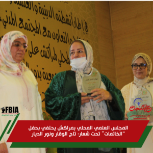 أشرف المجلس العلمي المحلي لمراكش، التابع للمجلس العلمي الجهوي لجهة مراكش آسفي، على تنظيم حفل “الخاتمات”، وذلك بشراكة مع جمعية بذور الأمل للمرأة والطفل، تحت شعار “تاج الوقار ونور الديار”، في إطار أنشطته الدينية والعلمية والثقافية، وتنزيلاً لسياسة الانفتاح والتعاون مع مكونات المجتمع المدني.