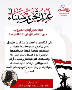 ويمثل عيد تحرير سيناء رسالة متجددة للأجيال، مفادها أن الأوطان لا تصان إلا بالوعي والعمل والبناء، وأن معركة التنمية لا تقل أهمية عن معركة التحرير. فكما استُعيدت الأرض بالإرادة، تُبنى اليوم بالمثابرة والإخلاص.