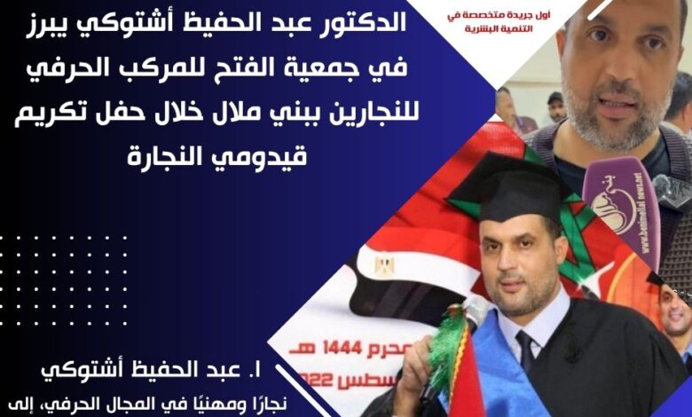 الدكتور عبد الحفيظ أشتوكي يبرز في جمعية الفتح للمركب الحرفي للنجارين ببني ملال خلال حفل تكريم قيدومي النجارة