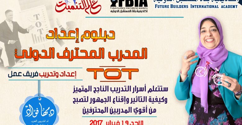 بقيادة أم المدربين العرب د.مها فؤاد مطورة الفكر الإنساني تعقد فعاليات دبلومة المدرب المحترف الدولي يوم الأحد الموافق التاسع عشر من فبراير الجاري لعام ألفين وسبعة عشر ميلادياً والذى يقوم علي تدريبها فريق عمل د.مها فؤاد أم المدربين العرب ومطورة الفكر الإنساني