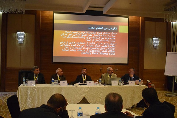 واشار الى انه نظرا لخطورة تداول واستخدامات المواد الكيماوية وضعت هيئة الأمم المتحدة تشريعات جديدة تلزم الدول بتصنيف وترميز موحد للمواد الكيمائية ويتم تحديثه كل عامين، والزمت الشركات والهيئات الدولية بوضع علامات تحذيرية موحدة على المواد الكيماوية بهدف الحفاظ على السلامة المهنية حيث ان هناك دول تضع تحذيرات متباينة لاستخدامات المواد الكيماوية بنا يعرض البشر والبيئة لمخاطر كبيرة.